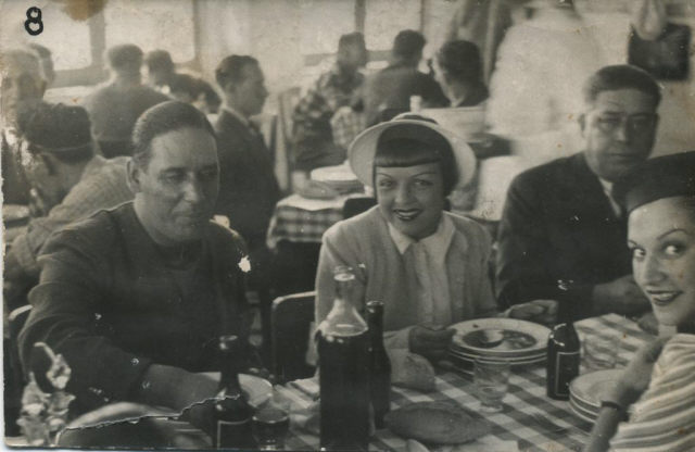 Retrato de Beatriz Costa, pseudónimo de Maria da Conceição Costa - (Mafra, 14 de dezembro de 1907 - Lisboa, 15 de abril de 1996). Foi uma atriz portuguesa de teatro e cinema. À mesa de um restaurante, ladeada por dois indivíduos, sendo um deles Raúl de Oliveira, do Jornal de Notícias. O registo é do ano de 1935.